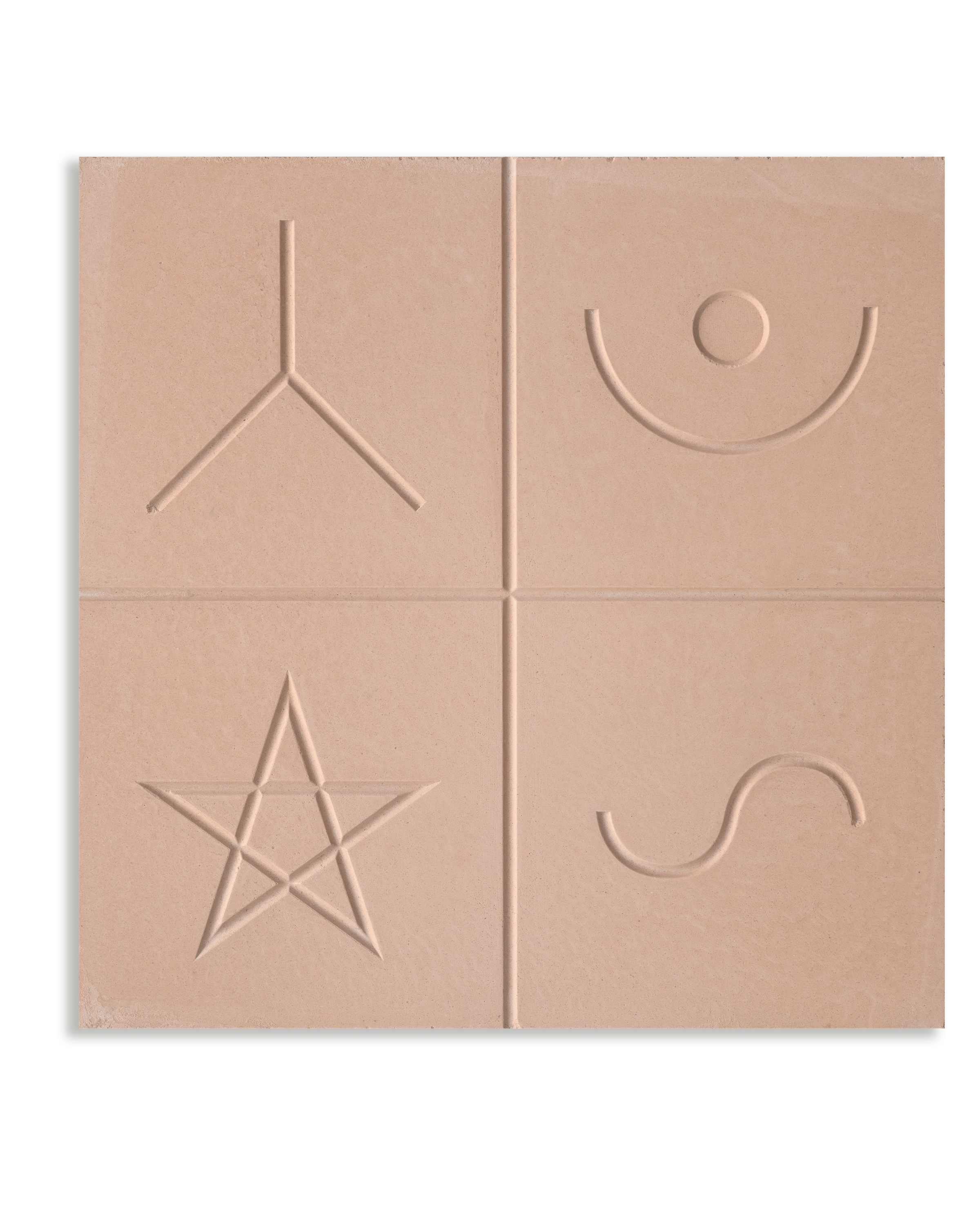 Argot takes its name from the linguistic term for coded jargon—and its inspiration from a secret language carved into history. In the 19th and 20th centuries, transient workers left cryptic symbols on fences, walls, and under bridges: warnings of danger, promises of opportunity. The collection combines these "hobo code" marks with ancient petroglyphs, runes, and meteorological symbols—a motif that interprets both mystery and archaeology. Argot is available in five colorways: Black, Blue, Blush, Terra Cotta, and White. The encaustic tiles are made for residential or commercial wall applications, and can be installed with or without grout. |