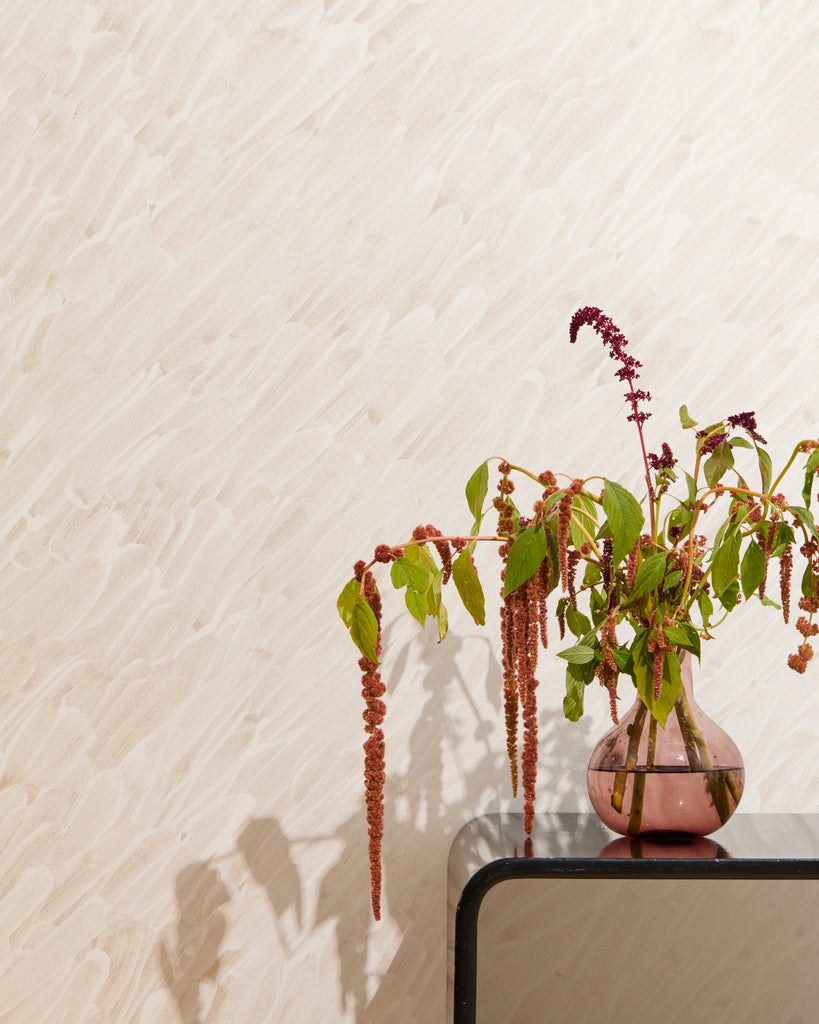 A dynamic field design of quick brushstrokes over verdaccio, drawing inspiration from the raw materials that defined Renaissance plaster—volcanic ash, lime, and marble dust. The palette evokes Renaissance opulence reimagined in contemporary colors that unite rich texture with refined simplicity. |